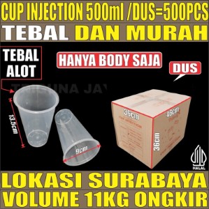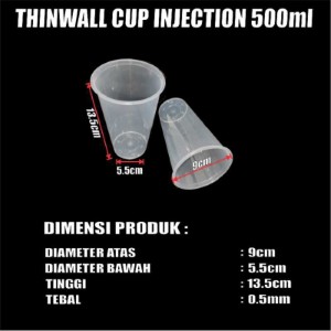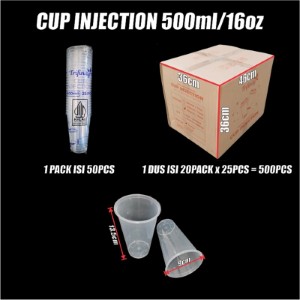 Cup Injection 500ml 16oz Dus 500pcs Thinwall Cup Injection Rata Transparan Halal Tinggi 13.5cm cjy